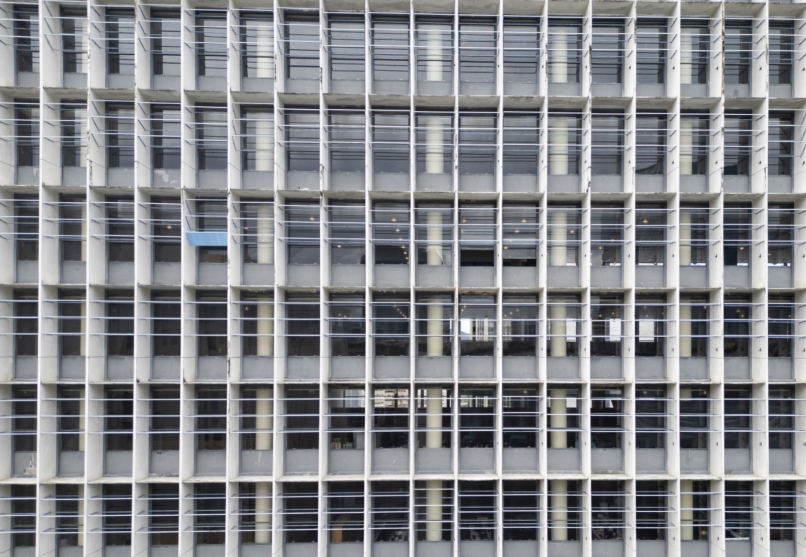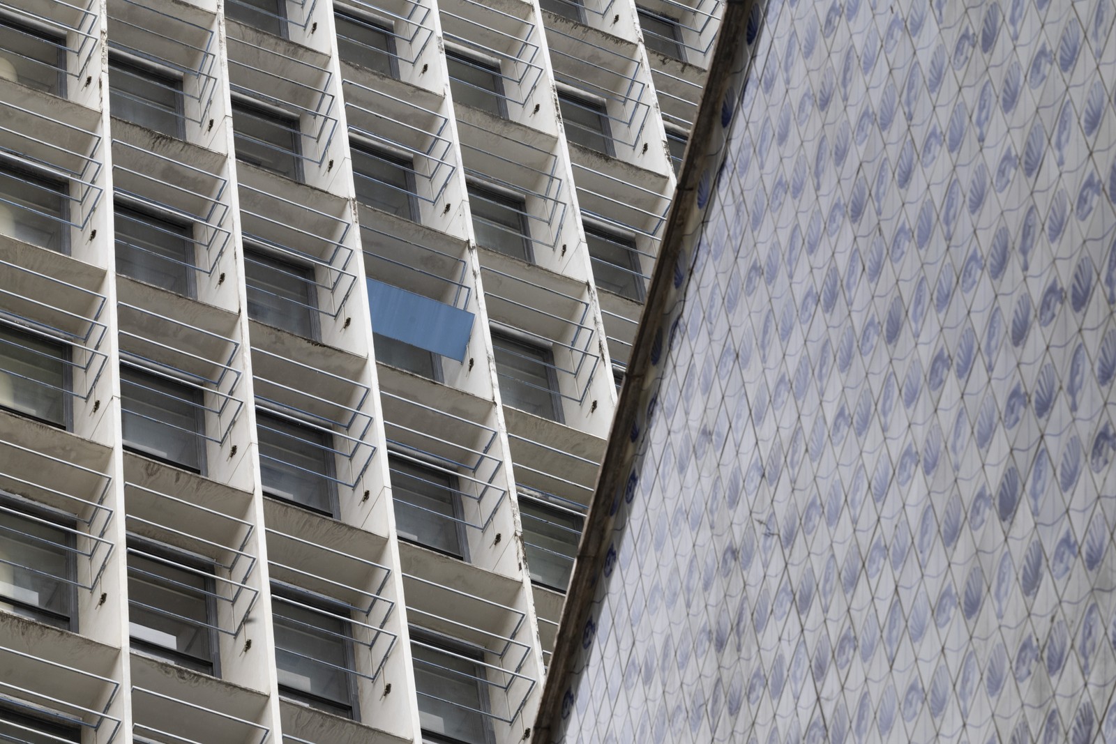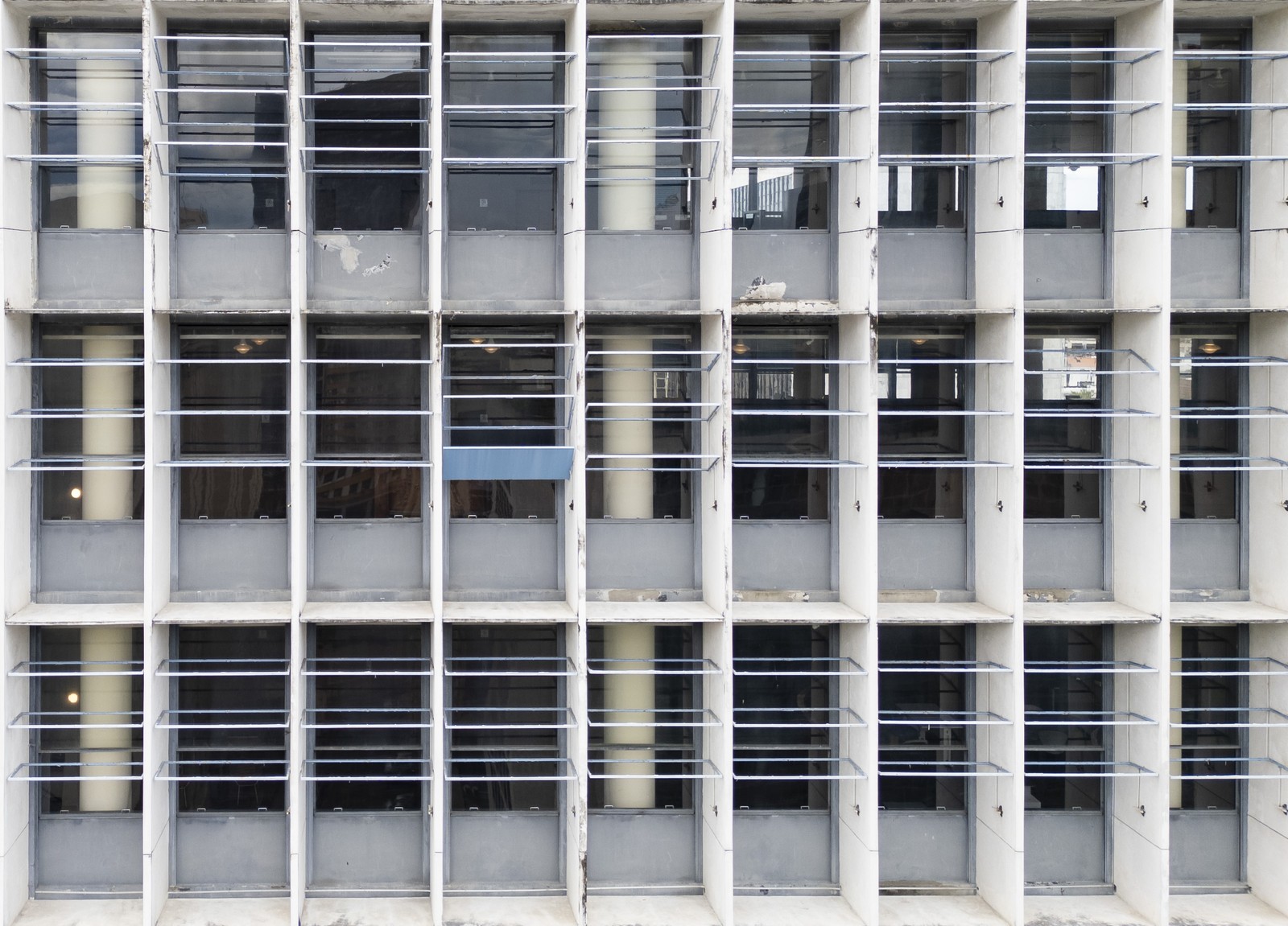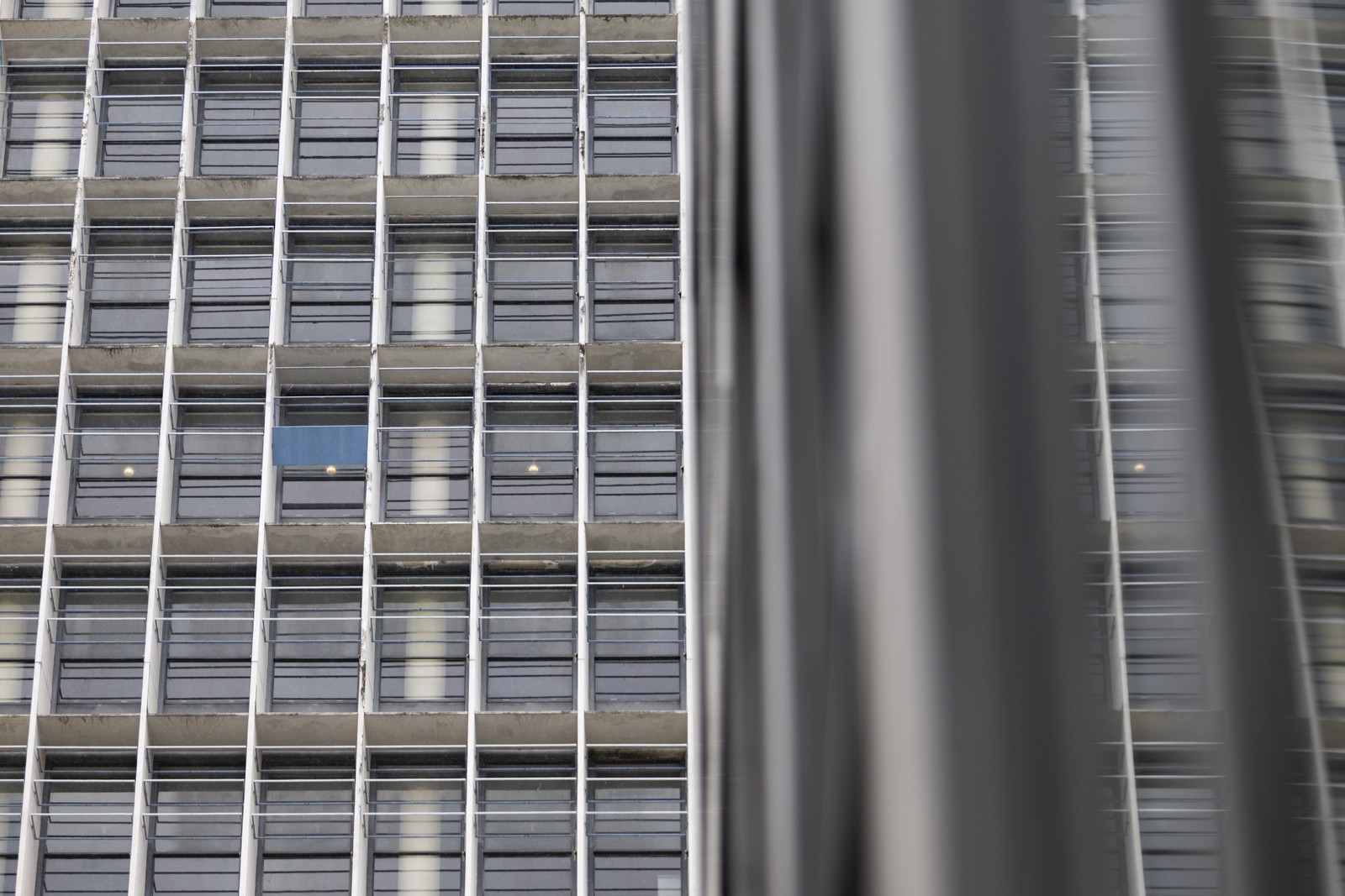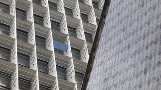 Após quase um ano da inauguração da reforma,os painéis de brise-soleil não foram instalados. No 12° andar da fachada principal,há apenas uma placa,deixada como modelo — Foto: Márcia Foletto