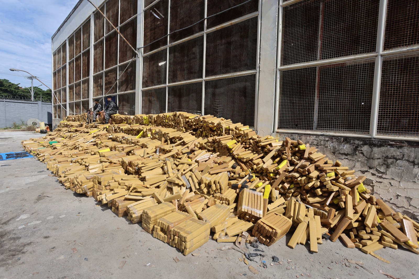 A retirada desta montanha de mais de 24.600 tabletes de entorpecente da favela mobilizou equipes por cerca de cinco horas e exigiu viagens de quatro caminhões,cada um com capacidade para transportar cinco toneladas. Além da grande quantidade de droga,os policiais apreenderam quatro fuzis e quatro pistolas escondidos perto do local onde a carga foi encontrada. Um quinto fuzil foi apreendido em outro ponto da comunidade por policiais militares,que chegaram a trocar tiros com criminosos durante a operação. Ainda foram recuperados 26 veículos roubados,entre motos e carros,e um suspeito foi preso.