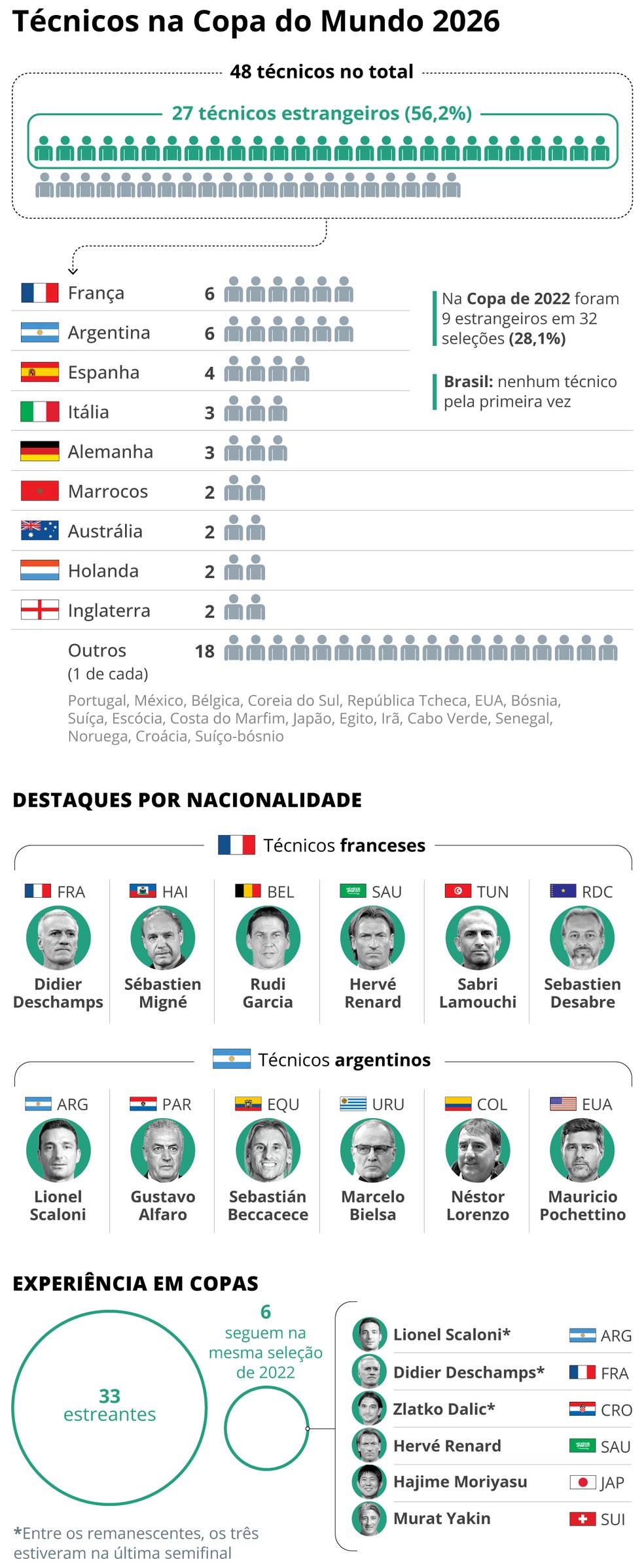 Infográficos dos técnicos da Copa do Mundo de 2026 — Foto: Editoria de Arte