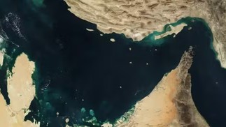 Imagem de satélite mostra a localização do Estreito de Ormuz — Foto: Divulgação/Nasa via AFP