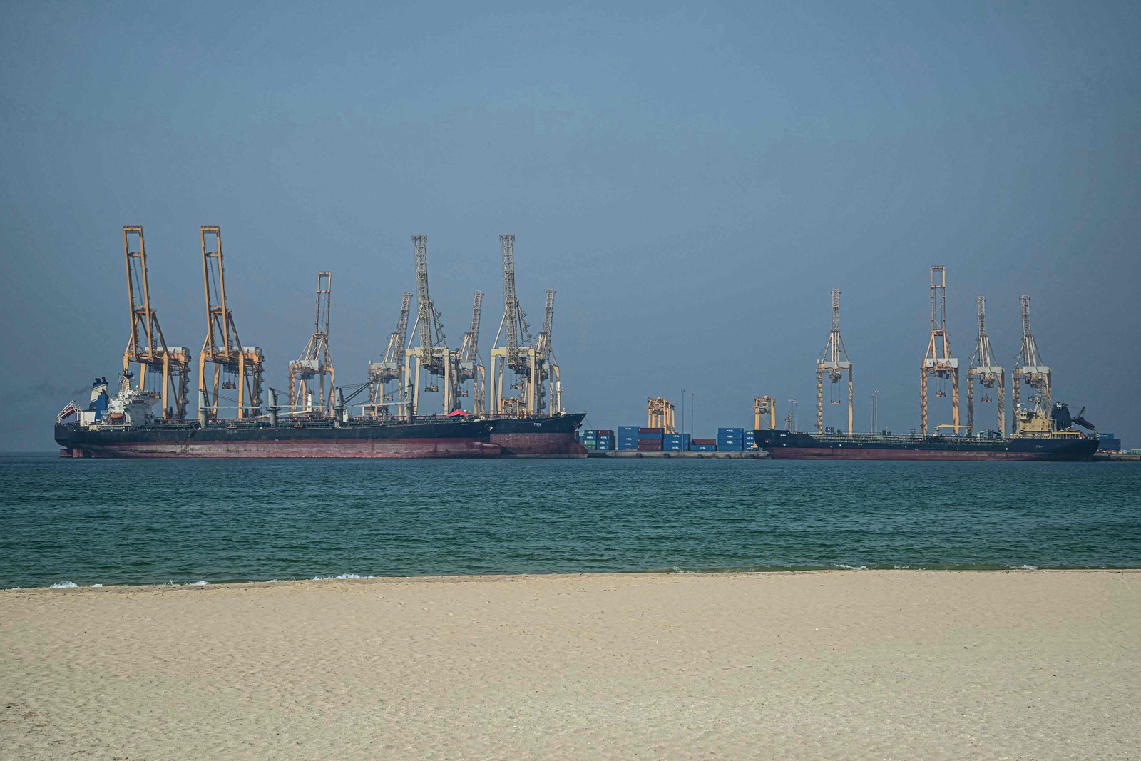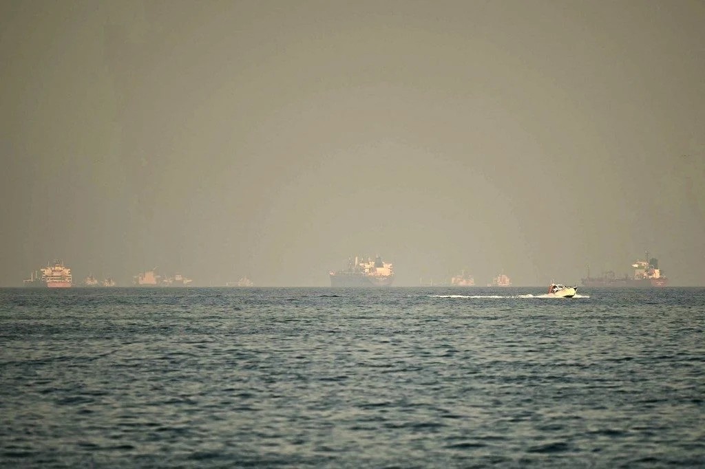 Navios na costa de Dubai em meio à crise no Estreito de Ormuz — Foto: AFP