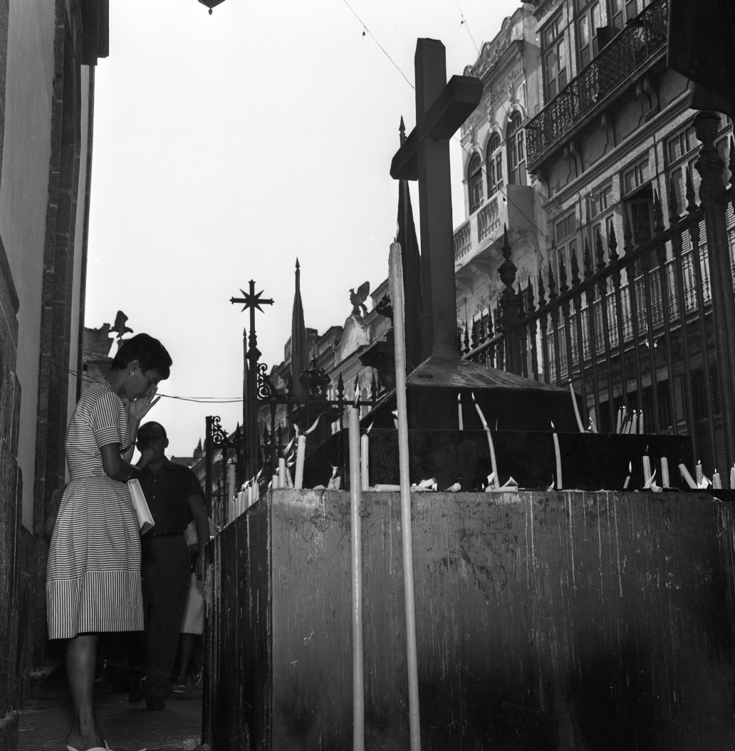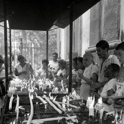 Fiéis rezam e acendem velas em homenagem ao padroeiro,em 1963 — Foto: Arquivo / Agência O Globo