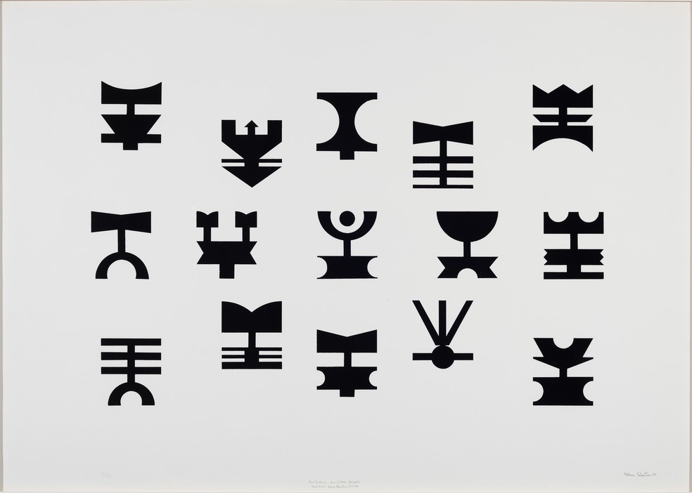 Serigrafia do Alfabeto Kitônico,sistema visual criado por Rubem Valentim — Foto: Divulgação/Jaime Acioli