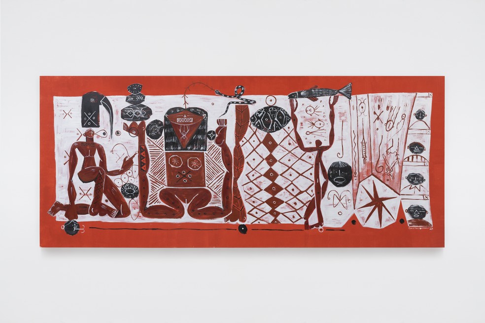 Obra de Gustavo Caboco exposta no Museu do Pontal — Foto: Julia Thompson